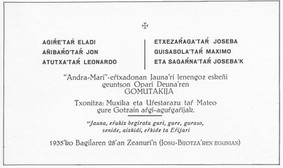 Badirudi Jose Sagarna, euskalduna zan neurrixan abertzalien aldekua zala (mezak eta katekesixa euskeraz emon...) baiña ez dirudi militantia zanik. Ez dirudi oso fidagarrixa, beraz, “Euzkadi” egunkari abertzalian Azaruan 8xan agertutako albistia:
