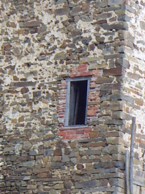 Mandiola Goiko horman obusak lagatako zulua, ladrilloz estalitta