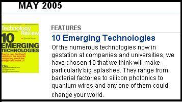 Urtero bezala, maiatzeko zenbakian , Technology Review aldizkariak, azaleratzen ari diren 10 teknologia nagusiak azpimarratzen ditu.