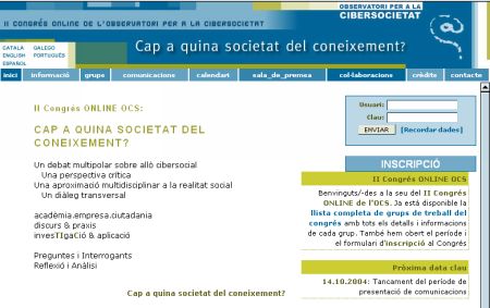 OCS , Observatorio para la Cibersociedad delakoak antolatzen du: II Congres ONLINE OCS: Cap a quina societat del coneixement?