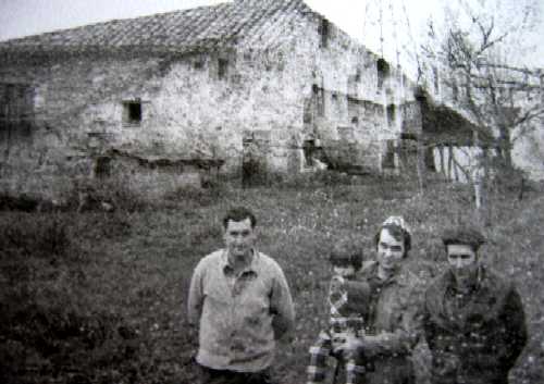 Argazkian, mendebaldeko aterpea. Salkin txakurra, Luis Aranberri "Amatiño" eta Mikeldi Aranberri semerik nagusiena. Orduan hiru urte besterik ez zituen.