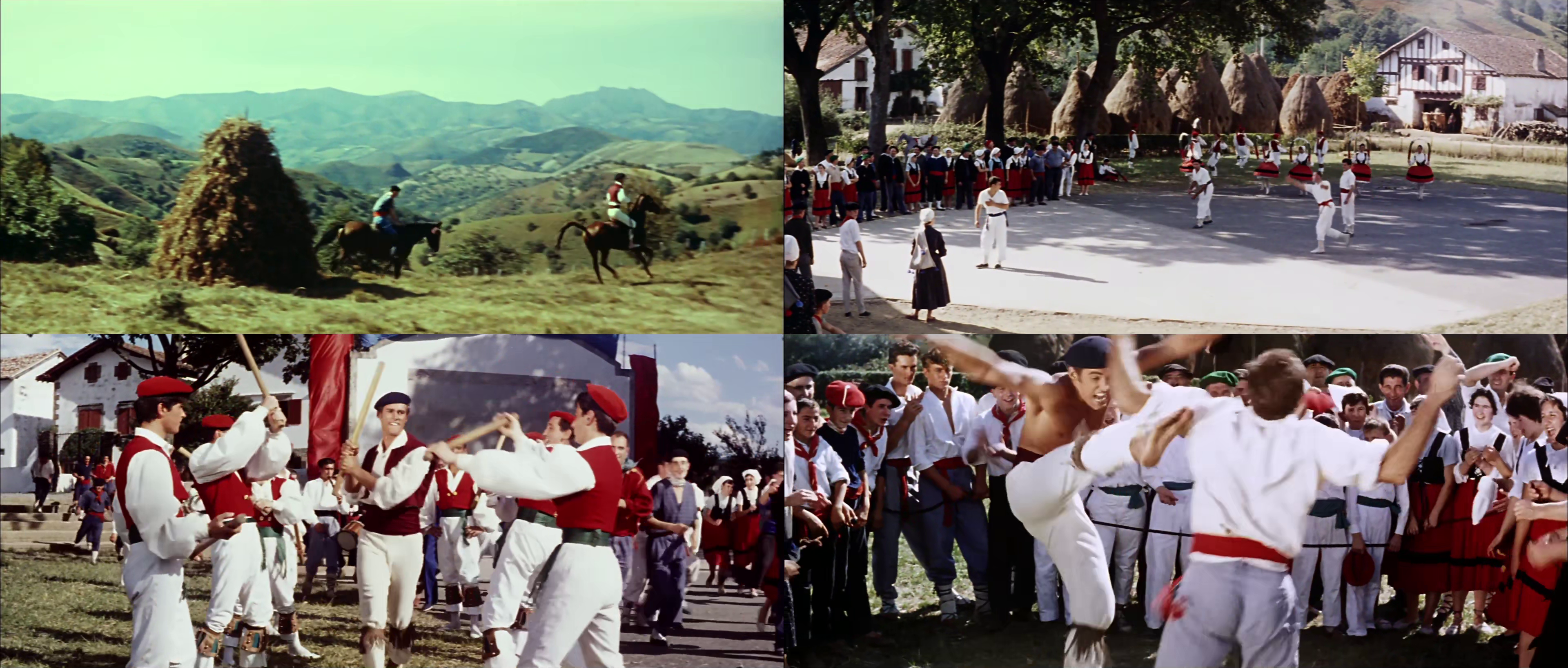 Hurrengo planoan belar metak agertu ziren. Eta kredituak amaitzeaz bat herri bateko plazara iritsi ziren, iparraldekoa zirudiena, non txistulariak, dantzariak eta pilotariak zeuden. Argi zegoen filma euskaldunoi buruzkoa zela. Edo, hobe esanda, estereotipoen (benetako zein okerren) pot-pourri batez osatutako euskaldun moduko batzuen ingurukoa.