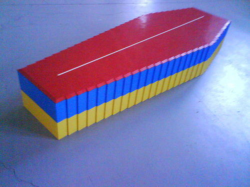 Tabakaleran arte latinamerikarreko boutade zenbait ikus daitezke orain. Horien artean, legoz egindako hilkutxa polit hau. Koloreak Kolonbiako banderarenak dira, eta goiko marra zuria kokaina esan nahi du. Artistak eskatu du bere gorpua hemen enterratu dezatela hiltzen denean. Eta enterratu ondoren 10 urte igarotakoan, atera dezatela, hondakinak bota, eta lego piezak Kolonbiako umeei banatzeko. O, ze sakona.
