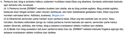 “Ez. Egin dezagun zerbait eutsigarria, barka, iraunkorra. Eman diezaizkiogun armak herriari: blogosfera osa dezaten herritarrek, euskaldun bakoitza blogista bihurtzeko xaxatuz. Batzuek aukera aporbetxatuko dute, beste batzuek ez; baina gutako bakoitza (edo gure artean asko eta asko behintzat) hedabide bat denean, euskarazko informazioaren esparruak buztan luzearen antza izango du. Eta orduan, merkatu nagusiari zerbitzatzen dion EITBk barik, blogosfera anitz horrek okupatuko du nagusitasuna euskarazko Interneteko komunikazio eta informazio esparruan. Gu izango gara nagusi. Gu, blogariok, bakoitza bere 15 laguneko jarraitzaile-multzoarekin.”