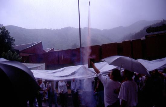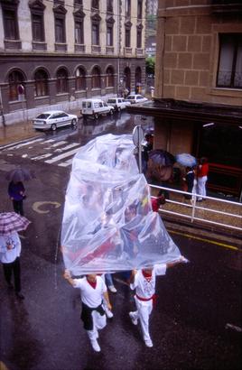 Hamen barriz prozesiño hasieria dakusagu, eurittarako plastiko eta guzti.
