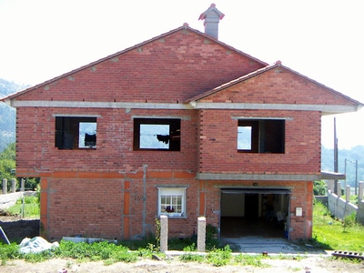 Halan, lehenagoko argazki tradizional horren ondo-onduan (emakume bat, adar-fardela buruan daukala) halako beste bat topatzen juagu ixa beti. Ez, ez dok obretan daguan etxia: bertan familixa bat bizi dok, beheko pisuan. Euren basarri zaharra eraitsi eta barrixa jasotzen jiharduek… juan dan 15 urtian. Jualiak dittuk, seguru, igual Bizkaira: dagozen lekuan dirua irabazten juan ahala, udan hona etorri eta etxia eraikitzen jiharduek pizkaka-pizkaka… Urbanistikoki hondamendixan jagok Galizia, azken hamarkadetan: benetako “kontserbadoriak” diran galiziarrak desesperaziño baten jagozak aspaldittik…