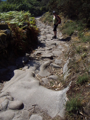 Morrazoko penintsulia ziharkatzen daben galtzada bat ba jagok. Berau hartuta, ibillaldi politta egin juagu Aldanetik Cangaserarte, goizago jaikitta. Hamen bai, hamen turista izaeria pizkat ahaztu eta ibiltari moduan kamuflatu gaittuk: errepidietatik urrindu eta bidezidorretan zihar ibilli gaittuk, estratara heldu arte. Basarrixak eta basarrittarrak izan doguz bidelagun, esandako moduan kamuflatuta giñoiazelako.