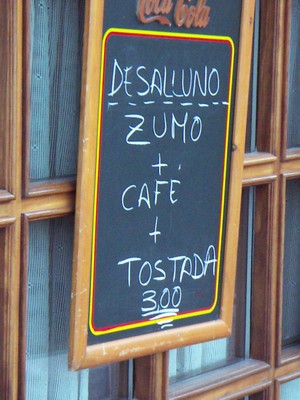 Eta azkenik, Ondarruko taberna baten jasotakua. Bere letrero guztiak erderaz jarri ohi daben taberna baten, hain zuzen be. Ez dalako bakarrik Markiñan gertatzen, erderaz egin norbere "mailla altua" erakusteko ustian, eta artaburu analfabeto baten modura geratzia.