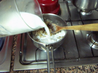 - Aldian esne berua izango juagu, aurretik prestatuta. Pixka-pixkaka bota eta nahastatu, harik eta gura dogun texturia lortu arte.