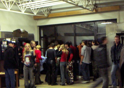 En fin, Amañako parrokixako lokal haretara heldu eta ofizina moduko batzuetara sartu bihar zuan, entradak hartzeko. Gero "hall" haundi baten bueltaka jebillen jentillajiari begira geratu nintzuan. Gehixen-gehixenak 20 urtetik beherakuak zittuan, eta itxura makarrak nahiz pijoteruak nahikua parekatuta jeguazen. Edade hortik gorakuak be bajeguazen, baina zatixa gitxiago, zenbat eta zaharrago orduan eta klasikuago (punk gangardunak, skiñak, makarroidiak...). Hauen artian ez jeguan pijorik.