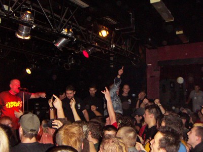 Hurrengo sorpresia aretora sartzian izan zuan: ezin zuan ez erre ez edan (ni pozez zoratzen - Ane marmarka). Izan be, gabez urtendakuan gitxien gustatzen jatana bixamuneko tabako antza izaten dok, erropia aldatzeko bestekua. ¡Punk kontzertua tabako eta alkohol barik! Imajinatu eziñezkua, Euskalherrixan. Aretua egurrezko lurra jeukan, eta ventanal haundi batzu estaltzen kúrtiña haundi eta pisutsuak (imajinatu Unibertsidade Laboraleko antzokixa, aulka barik). Kontzertua hasi besain laster, argixak emetatuta, kortinoien atzerako bidaixak egiten hasi zittuan gaztiak; hasieran pentsatu najuan: "Aaah, hamen be bajagozak esnifatzeko zerak, edo txortaleku ezkutua", baina ¡bai zera! gero konturatu nintzuan zigarruak erretzera baino ez zoiala jentia. ¡Eta poliziakuak zelan etorri! Bai, ze munipa bi hauetaz aparte, areto osua organizaziñoko jentez beteta jeguan, kamiseta baltzekin, gorila lanetan, eta nunbaitten "arazo" bat detektatu ezkero, harei deittu eta ¡rrra! hantxe sartzen zittuan poliziako bixak jente artian, linternekin, infraktoriaren billa. Hotzikarak eragitteko modua, harek Terminator bixok, punk kontzertu baten erdixan nahi zebena egitten, eta jentia... ¡ez zan inundik inora aztoratzen! ¡inork bez ez jetzen pitadarik egitten! Eta ez pentsatu jentia formal jeguanik gero: han gehixenak (bai, gehixenak) zoruan pare jeguazen dantzan, pogo/deskontrol/macumba/quilombo mobimendu mixtura xelebrian. Mozkorrak be ba jeguazen nahikua, zeaitxik eze, nahiz eta bertan aretuan ez jeguan barrarik, kanpoko tabernetara juaten zuan jentia, eta eranda bueltatu. ¡Mozkorregi jeguazenei be ez jetzen Terminatorrak barkatzen! euren linternekin search-and-destroy harrapatu eta kanpora etaratzen jittuezen.