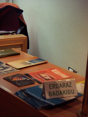 Eskerrak dana ez dagola galduta. Donezteben bertan, mankomunidadeko buleguetan euskeriak bere leku naturala jeukan (preponderantia) eta harreragunian kartel esanguratsu hau jeguan.