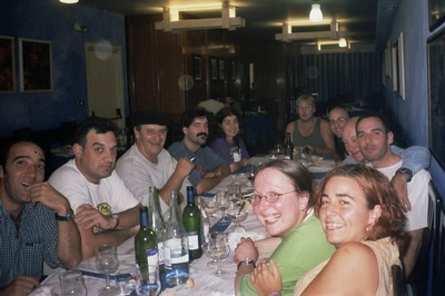 Bilboko alde zaharrian ederto bazkaldu genduan, eta edataile onak giñanez... ba poz pozik manifara. Bidian, Danilok egin eta forokidiak adostútako testu bat banatzen juan giñan, Batasunaren ilegalizáziñúaren aurkan. Berandutu egin jakuan, eta metrua hartu bihar izan genduan. Berton, “manifiaren aurreko partian“ genguazen geratuta beste euskal argentiñar batzukin (Matias eta bere lagunak). Harutz abixatu giñan ixa hiru ordulareneko atzerapenarekin eurak topatzeko esperantzaz, euskal hegoamerikarrak dauken denpora flexibílidadía inbokatuz...
