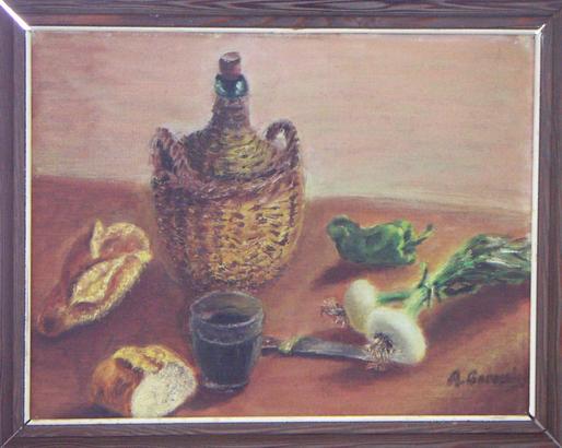 Kuadro hau beti ezagutu neban Mekolako etxian, beraz berandu moduan 60 hamarkadakua da; baiña 40-50kua bebai izan leike... Goguan dakat, umetan, kipulia dagon lekuan txittia ikusten nebala nik (pegorako ateko gelan egoten zan, erdi-illunian... eta ondiok Culineitor bihurtu barik nenguan...).