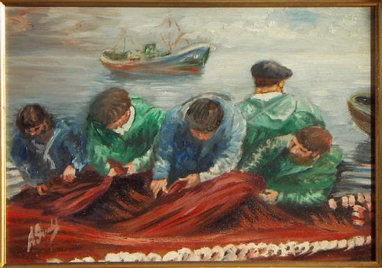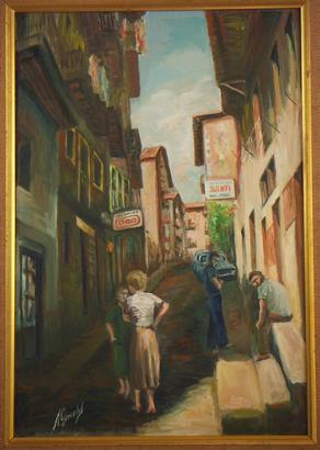 “Santi” eta “Toki”-ko kalia txikiteruendako; oker ez banago Azpiri izena daka berez. 80 hamarkada hasierakua. Aittan kuadro kuttunenetakua zala uste dot, Mekolako leku preferentzialian esegitta egoten zan (egongelako mahaiburuan).