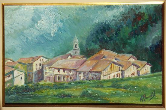 Kuadro honekin sorpresia hartu neban. Tio Inaziori galdetu netsan ia aittan kuadrorik ete zekan, eta han ibilli giñan amamanekuak eta beriak ikusten... eta halako baten, hau. Zihero ahaztuta nekan. 80 hamarkada hasierakua da, ni txikixa nintzanekua. Ez dakitt zergaittik (oporrak izango ziran edo), baiña ni han bueltaka ibilli nintzan denpora guztian, eta prozeso luzia gogoratzen dot: aitta maldiziñoka, koloriekin-edo burruketan... lehelengo planoko potiñorrekin be buruhaustiak izan zittuan, gizona etxakon bere gustora urtetzen edo... Asko poztu nintzan kuadrua berraurkitzian.