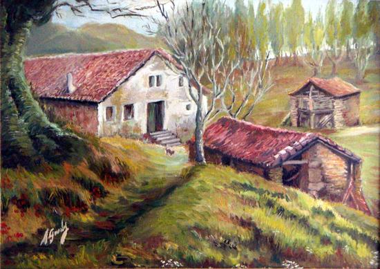 Oso ondo gogoratzen dot kuadro hau noiz pinttau zeban aittak, eta argazkixa bera etara genduan momentua (oker ez banago, argazkixa nik neuk etaratakua da). Baiña hara: ez dakat goguan ze leku dan. Esango neuke Madarixa aldeko basarriren bat dala, sasoi hartan sarri ibiltzen giñalako handik zihar, Peña Santiagon idazkixei jarraittuta; baiña ez nago seguro.