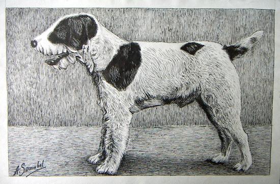 Harkatzez egindako txakurra. Idearik bez noizkua dan; nik beti ezagutu izan dot Antiguako Amako pasilloko paretan. Gehixago esango dot: erdi ezkutuko lekuan egonda, gaztetan erreparau be ez netsan egitten, argazkixa zalakuan. Berandu xamar konturatu naiz ni marrazkixa zala (eta gaur egunian, zuri-baltzezko marrazkixak dira nere gustokuenak).