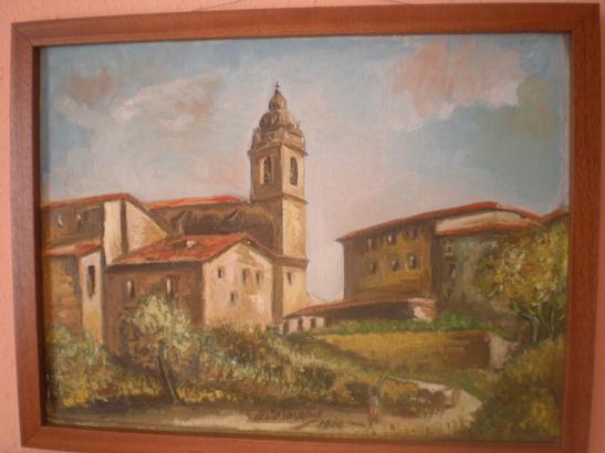 Kuadro hau, amari entzunda detsatenez, Maeztu da (Araba); 1960ko fetxia daka. Mekolako éntradan genkan, eta bai markua bai bastidoria zitzak janda zeguazelako, ojala ebagi eta rollo batian bilduta genkan, armarixuan. Hona etorri nintzanian, oholian pegau eta marko barrixakin ederto geratu da.