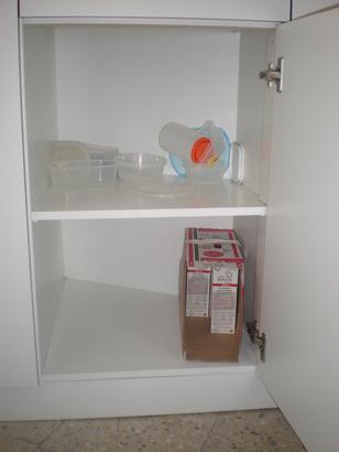 Horren barruan, errutinako gauza asko egitten jittuagu alkarrekin: hórren artian sukaldekuak. Eta, aitta eta amari begira, umiari be sukaldeko gauzetan “laguntzeko” gogua etortzen jakok. Hori kontuan hartuta, beheko alturetan berak erabiltzeko moroko gauzak ipiñi genduzen: armarixo honetako arasian, esate baterako, tuperwarrak.