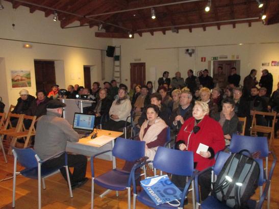 Harrittuta zelan aguantau daben jentiak. 600 pertsona ingurun nundik norakuak azaldu dittu Jesus Mari Toxuk diapositibaz diapositiba, gauza astuna, zure zuzeneko senidiak ez dirazenian... ondarrutarren alde, herri txikixa izatian asko be errezagua dala alkar ezagutzia. Jesus Marik aittatu dabenez, kuriosua da gaiñera betidanik ezagutu izan dozun jentia senidia dala deskubritzia; endemas gehixenak Kalandi inguruan bizi izan ziranian...