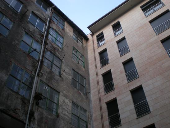 Ezkerrian labaderoko "gaztetxia" (ez squata: alkiler merke-merkeko etxe zahar-zaharrak) eta eskuman, Euzko Gaztedi Interiorrekuen etxetxua. Isasi barrenian ikusi leikian kontrastia.