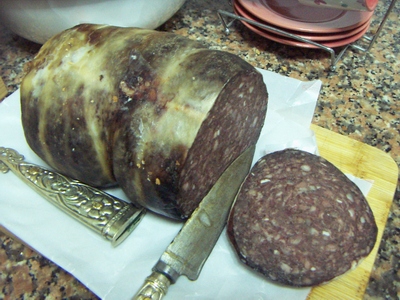 Alacanteko Ontinyent herrixan egitten dan hestebete bat da; beste iñun be ez da egitten. Txarrikixa dok: papadia, mihiña, muzturra, bihotzakin egitten dok, eta Mediterranear gusto sakona jakak piparbaltza, ultzia, nuez moskadia eta kaneliari eskerrak. Heste lodixetan sartu eta ederto gorde leike toki legorrian, frigorifikorik kanpo. Oso koipe gitxi jakak gaiñera.