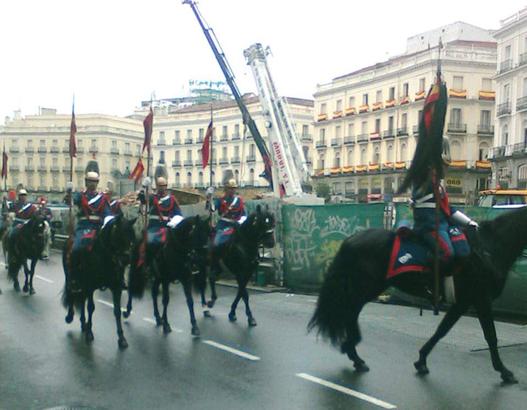 Madrillen suertau nintzan egun horretan. Lehelengo, Eguzkiko Portalian zaldun konpañixia topau genduan alarderako bidian. Buruan hojalatazko oriñala eta lanbasa gorrixa...