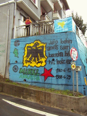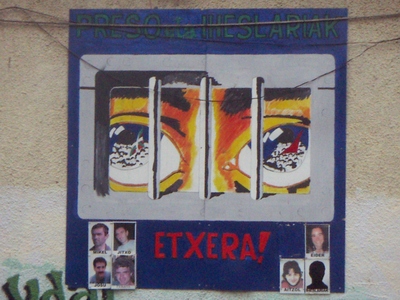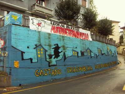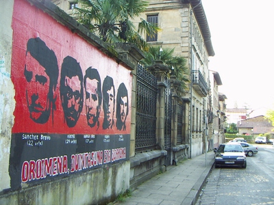Azken hirurak Oreretan (Gipuzkoa). Lehenik, ber muralaren bi bista: militante baten orhoimenez eta "Gaztaño errepublika independientea" (Gaztaño quartier horren izena düzü); hirurgarrena, presoen fabore.