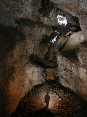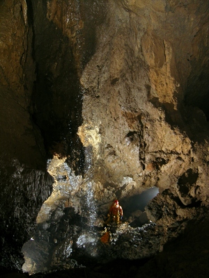 Lehelengo 6 orduak, sekulan ibillittako onenak. Petrus eta Gotzon leza hondora aurreratu ziran falta zan exploraziñua egittera, eta ni nere martxa geldixan abixau nintzan, zulo txiki guztiak miatzen eta deskubritzen. Bakardade total eta absolutuaz gozatzen. Tantanak ausittako isiltasuna. Lezian behera ur txorro txikixen konbersaziñuak entzutzen. Potzua-meandrua-potzua-meandrua... Illuntzar mendiko tontor parteko sarrera bertikal zilindriko espektakular bildurgarrittik 11.30etan sartu eta, eten bako beherakadan, Lea ibairutz abixatu nintzan lurpetik. Lagunak lagatako soka eta mosketoiak aprobetxatuta, erosua baiño erosuago zan bidia, gozamen hutsa.