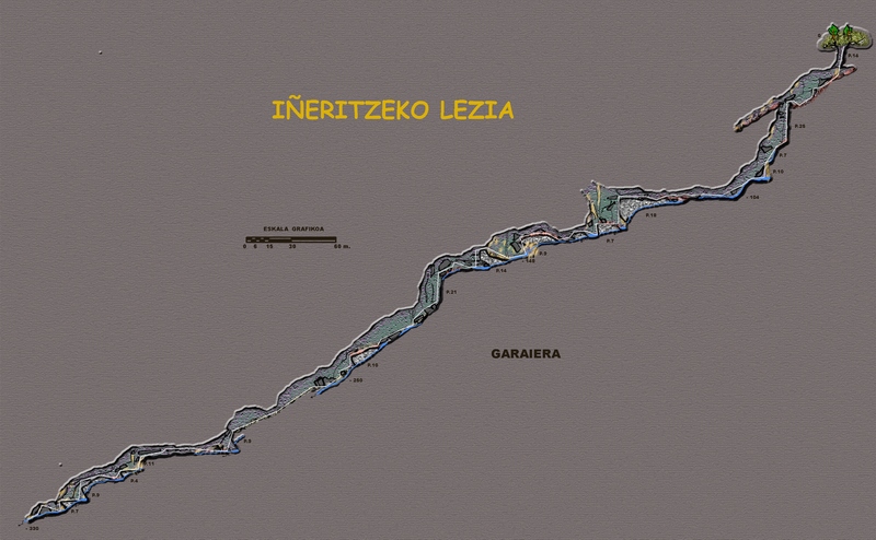 Urrixan 21an izan neban Iñeritzera jaisteko lehelengo aukeria. ADES taldeko lagunei behin eta barriro entzunda netzen leku ona zala soka eta burdiñekin praktikia hartzeko, eta horixe zan hain zuzen be neri falta jatana. Leziak 250 metro inguruko jaitsiera kontinuo bat egitten dau; honduan azken exploraziño batzuk egin biharra zala eta, 3 asteburu jarraixan juan biharra zeguan. Izan be, halako sakonera heltzeko bidia aurretik ekipatu egin bihar izaten da (sokak, frakzionamentuak, mosketoiak...) eta lezia hain da luzia ze, egun bi bihar izaten dira horretarako bakarrik; hirugarrengo zapatuan, bidia prest, leza hondua exploratzera abixau ziran Gotzon eta Petrus.