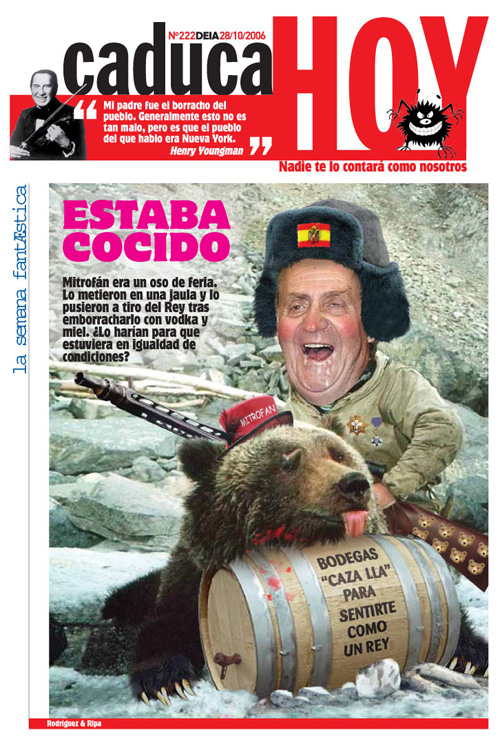 "Deia" egunkarixa dagonik eta txarrenetakua begittantzen jatak. Baiña, paradoxikoki, bere umorezko suplementua euskal kioskuetatik onenetakua, onena ez bada. "Caduca hoy" jaukak izena. Aurreko baten, Espainiako erregian gaiñeko txiste bat argittaratziangaittik eta salaketa legal bat jaso juek Audientzia Nazionaletik. Badakik (eta hala ez bada, neuk esango deuat) gure auzokuen herrialdeko agintari gorenak ba daukala hainbeste aje ondo ezagunak dirazenak baiña tabú diranak komunikabidietan, benetako tabuak gero: Borboien atzerapen mental hereditarixua (Juan Carlos eta Elena bere alaban agerixena), erregiak alkoholakin daukazen arazuak, bere sexuzaletasun konfliktibua (Barbara Rey, Paloma San Basilio artista espainiarrak izan dittuk bere maittale ezagunenetakuak), bere anai nagusiña -legez erregetzia hari tokatzen jakon- tiroz akabatu izana umetan, kaza istripuan... eta gehixago be. Bueno, ba hauxe izan dok salatutako fotomontajihori.