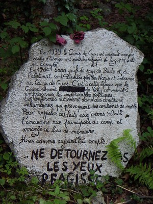 Hónek goiko argazkixok 1994n egindako monumentua dira, konzentraziño esparruetan hildako ehundaka millaka pertsonak gogoratzeko. Gurs-en ez zan egon trenik. Hor agertzen dan barrakoi eskeletua bai da hamen eguazenen erreprodukziñua