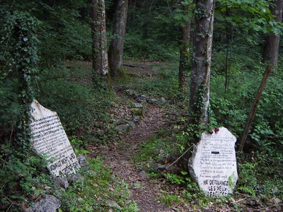 Sartu eta 1.072 lapida artian pasiatzen hasten gara; baiña begiratu han, barrenian, zugaitzen artian