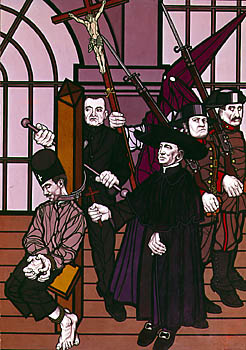 Liburuan lehelengo hiru larenak, baiqa, harrittu egin nabe. Estruktura intelijentia, engaqadoria, ariqa, eta era berian sakona, interesantia eta didaktikua. Ondo idatzitta egon bihar, halako liburu lodixa irakorriko bada. Nabarmena dok estruktura zinematografikua, (idazliak pelikula asko ikusi edo gidoiak idatzi izan dittu, seguru) eta beraz gaur egungo irakorliari gauzak erreztu egitten detza horrek. Gaiqera, hainbeste gorroto doten anakronismuak (!ai, Martinez de Lezea!) ez dittuk asko agertzen, eta benetan erreala jirudik erdi aroko rekreaziquak. Baiqa amaieran... (!ai, amaierak!) Otto Pette liburuan legez, idazliari amaitzeko halako kakalarri bat sartzen jako, eta aurreko ehundaka pajiqetan zihar pazientziaz eraikittko jokuak eta entrelazamenduak !brast! bat-batian eta nahikua era zazkarrian resolbitzen dira, errezkerixan jausitta.