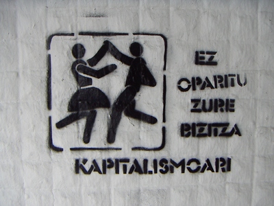 Esan dot aurreko urtietan asko ugaldu dirala, baiña plantillazko pintadak ez dira atzo goizekuak. Gauza hónetan eskarmentu luzia daukan ezker abertzaliak aspaldi erabilli zeban, “gaztea naiz... ¿eta?” kanpaiña ezagunian: