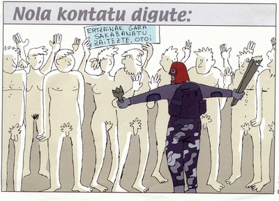 Eztittuadaz ezagutu ETAko kide askorik, baiña batzu bai. Taldian izaeriangaittik beste pistoladunetatik nahikua bereizten diran arren, ez dittuk libratzen ajietatik: ideolojixa bat izatiak hezkuntza politiko bat emoten detze –bestiak ez daukena-, baiña militarrak dirazen neurrixan disziplinia bardiñ izaten dok itsu-itsua. Ezagutu dittudazen elementuak “aparkalekuan” ezagutu jittuadaz baiña eta, horretara, ezin jakin armak emoten daben harrotasuna –prepotentzixia, hobeto- zelan darabixen. Ezta odolan usaiñakin mozkortzian zela erantzuten daben. Baiña pertsonak izatian, susmatzen juat ez dirazela miserixa hónetatik libratuko.