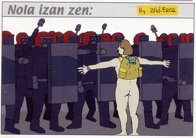 Zipayuen kuartela bistan daukatela idazten juat hau. Barkatu, zipayuen basia. Gaur goizian Javier Balzan berbak entzunda sutan jarri nauk, eta desfogau biharra jaukat. Gaur manifestaziño bat egitten juek EHNAMekuak, Bilbon edo. Betiko legian, abertzale españolak galazo bihar dala ta ez dala... Eta hara nun agertzen jakun Javier Balza (lagunendako Txabi) esplikaziñuak emoten: "erakunde ilegalizatu batek konbokatuta egon ezkero, duda barik galazo egin bihar dala; baiña indibidualak konbokatutakua ba da, baimena emon bihar dala". Halako era biribillian, ¡to! Eta gero bestetik, beste gauza batzuei buruz berbetan, torturen kontrako protokolo famoso horren barruan (martxan oin dala urte pare batetik ei jagona) oin hasi bihar dirala inkomunikaziñuan egindako galdeketak grabatzen. Ointxe.
