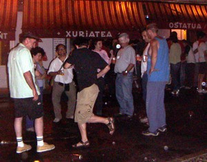Atzo heldu giñuazen Hazparnera. Geure erritual pertsonalei jarraittuta, Xuriatea herriko tabernan bildu giñan, tantanka, gure komandante Xarlok agintzen daben rhytma karibearretan. Zenbat jente gazte Hazparnen, harrittuta ibilli nintzuan (biharbada nere herrixan be egongo dok hainbeste gazte, baiña ez nauk asko ibiltzen parrandan…). Pablo, Aran, Luis, Rodrigo, Txabi, Barrenetxea, Sonia korsikarra, Ane eta ni.