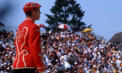 Goiko pasiotik aurrera, hiru-lau lekutan egin juek geldialdixa, leku bakotxian diskurtsua lau hizkuntzatan botata. Inpresiñua egitten jok hortxe goixan geldirik ikustia, pulpittu baten legez, beheian beraneante ardurabakuak, udako lozorrotik urtenda harrittuta gagozen bittartian. Batzu beste barik ezikusixana egitten juek, bestiok "ya están aquí los de siemprrrre" esanda amorratuta, bestiak eskuorrixak banatzen jiharduezen neskei papela hartu eta irakortzen... Nere kautan "hauxe dok hau bidia" pentsatu juat, Demo'en formak hegoaldian sartzen juateko esperantzaz.