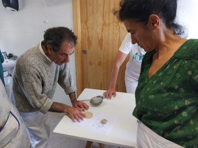 Xabi Akizu ogi-frogetan orearen testura behatzen